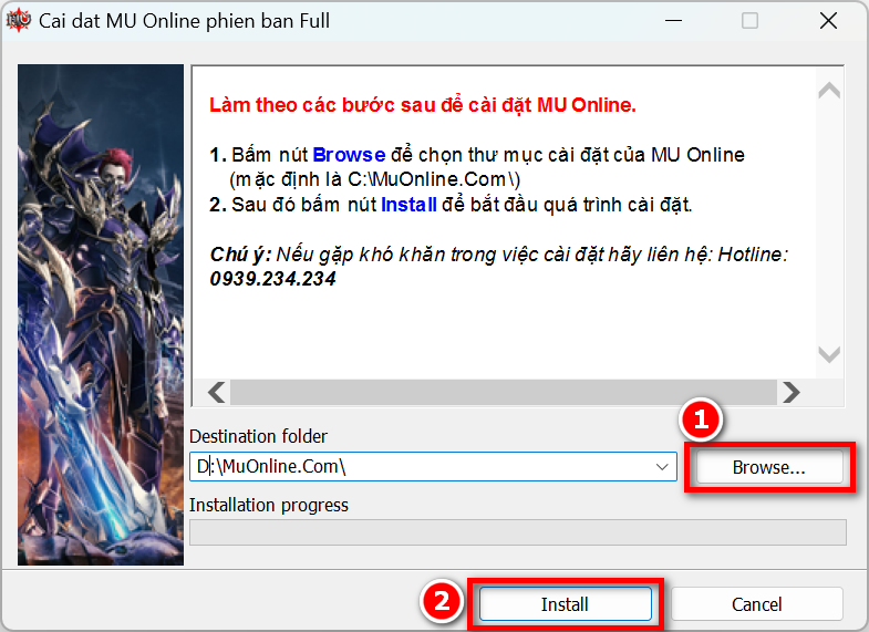 ✮ Để thay đổi thư mục cài đặt game, bạn có thể nhấp chuột vào nút "Browse" Hệ thống sẽ cho phép bạn chủ động chọn vị trí thư mục cài đặt MU Thiên Tử như ý thích.
