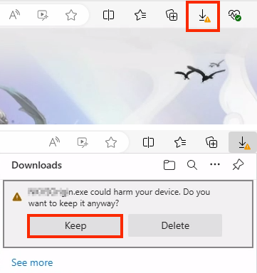✮ Nếu trong quá trình bấm link tải, hiển thị dấu chấm than ở biểu tượng tải xuống như hình dưới, bạn chỉ cần bấm Keep/Giữ để file được tải về.